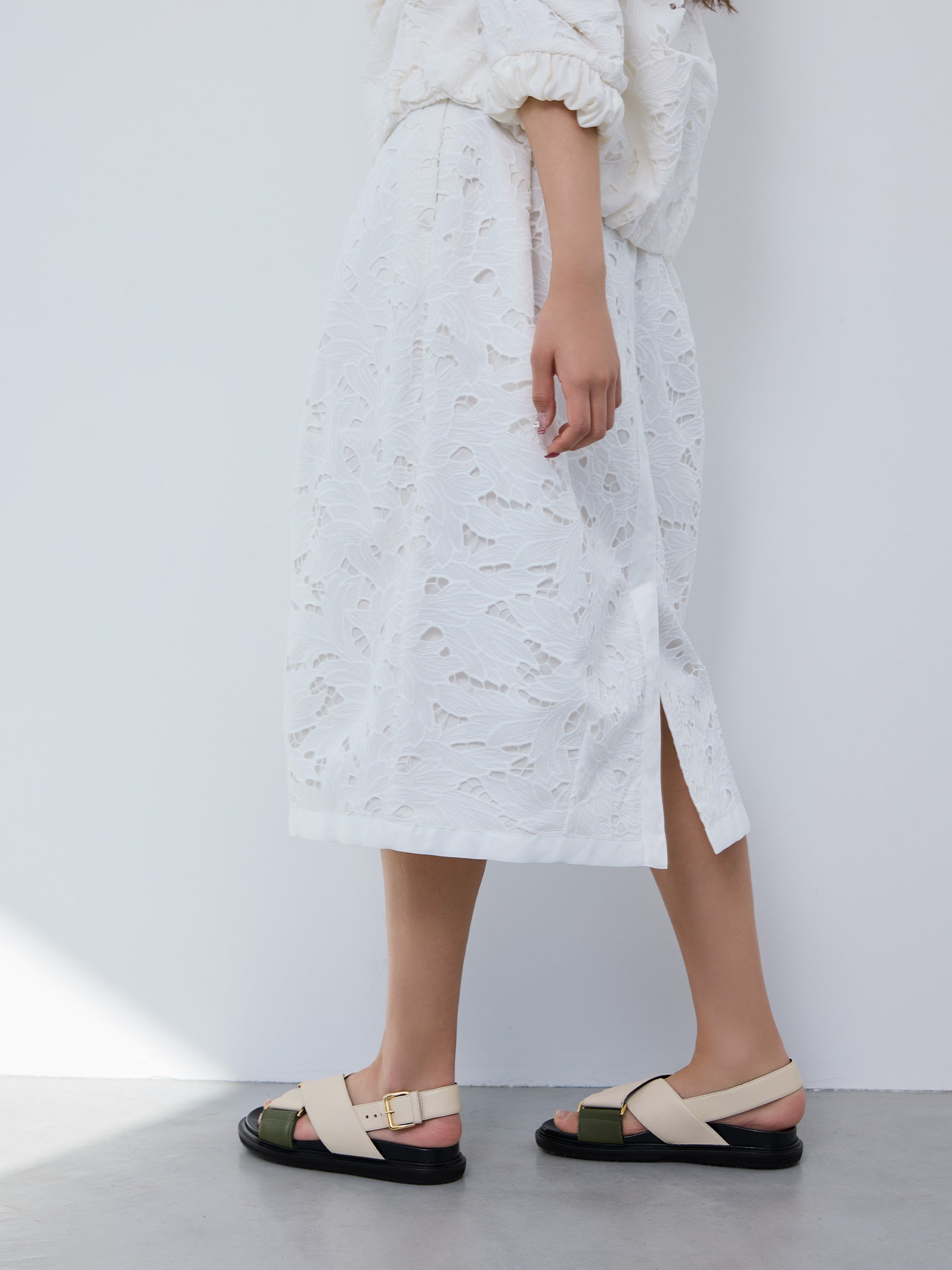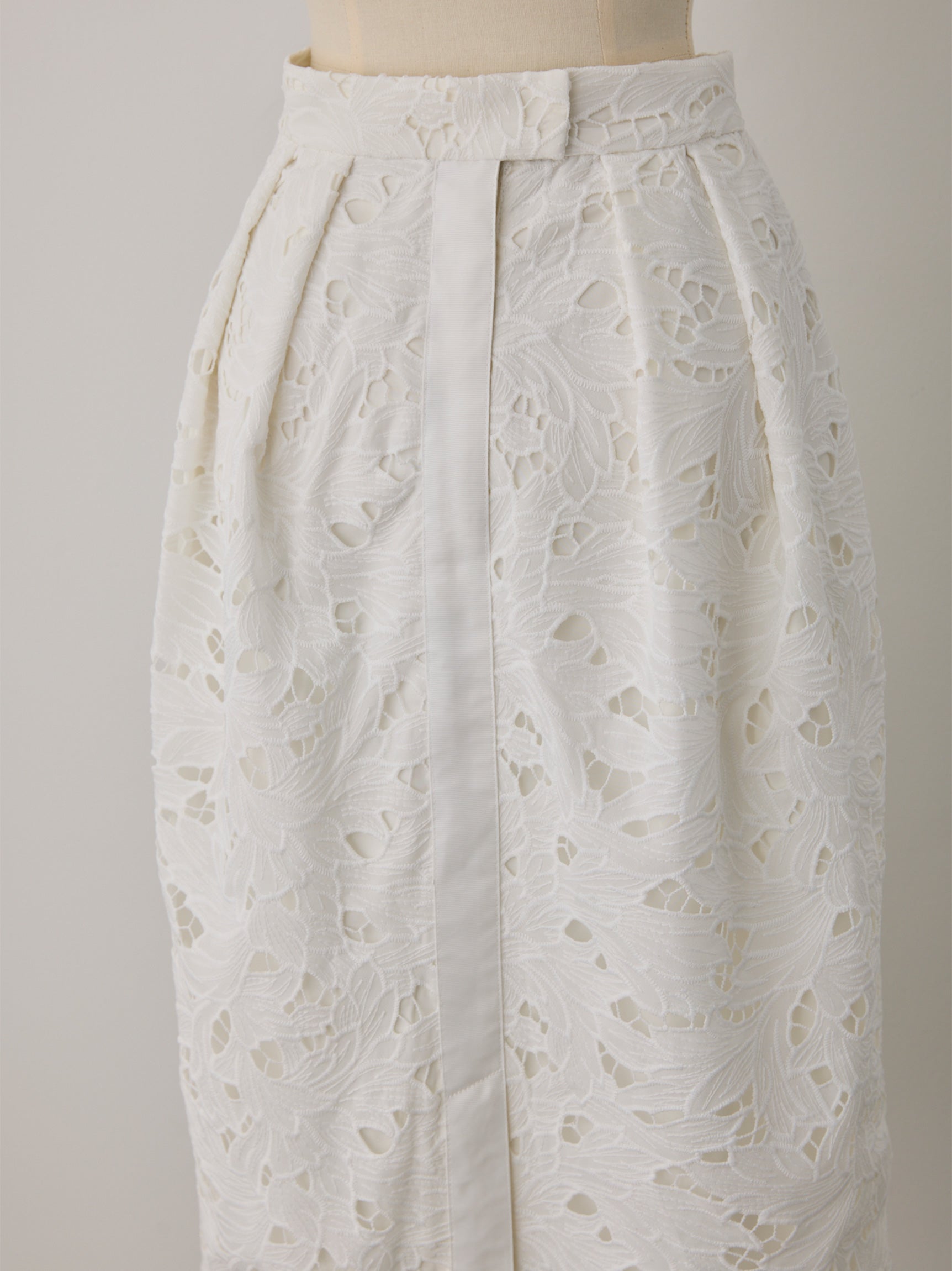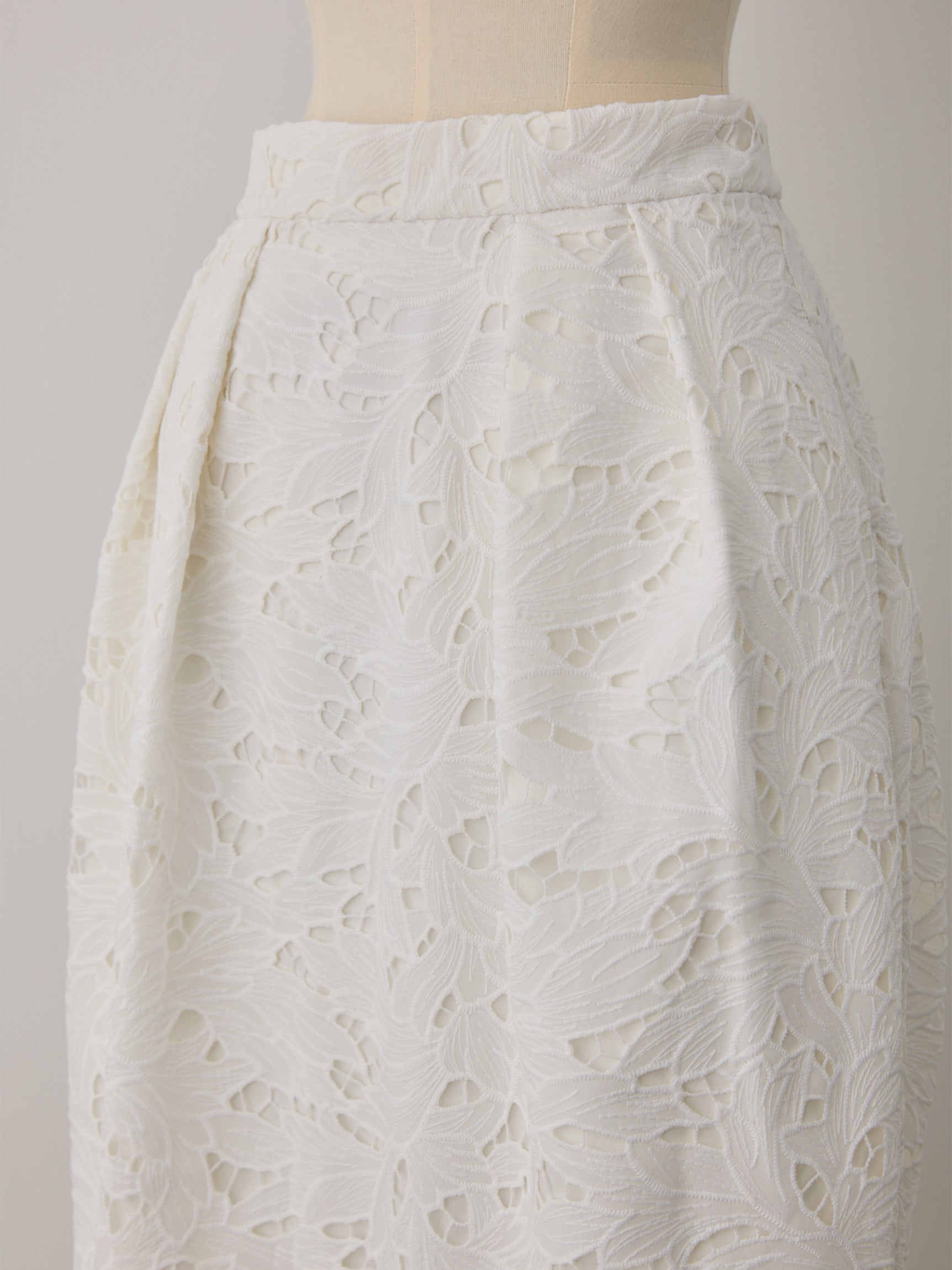 大ぶりのお花モチーフのレースが華やかにシーズンムードを纏うスカート。