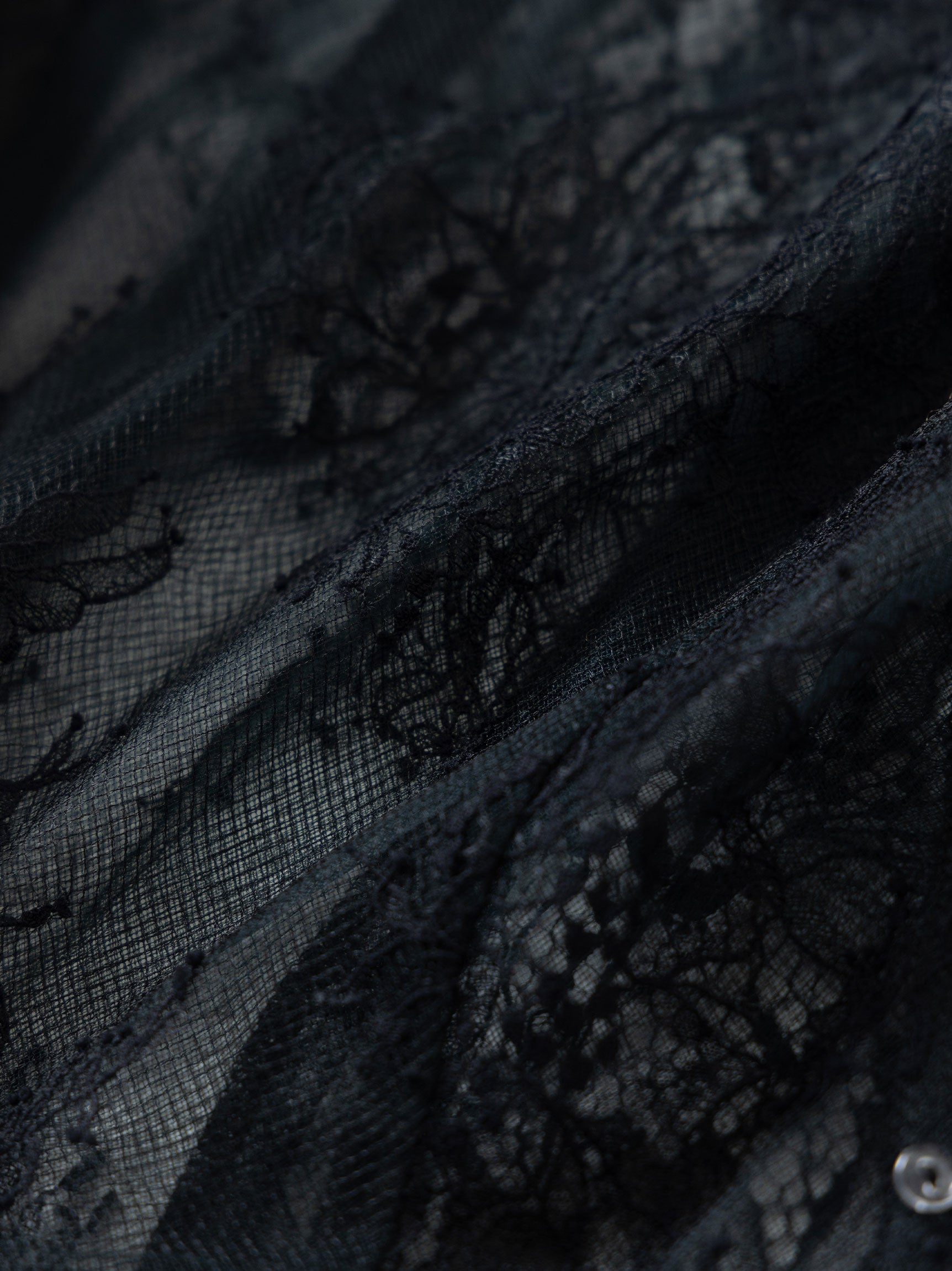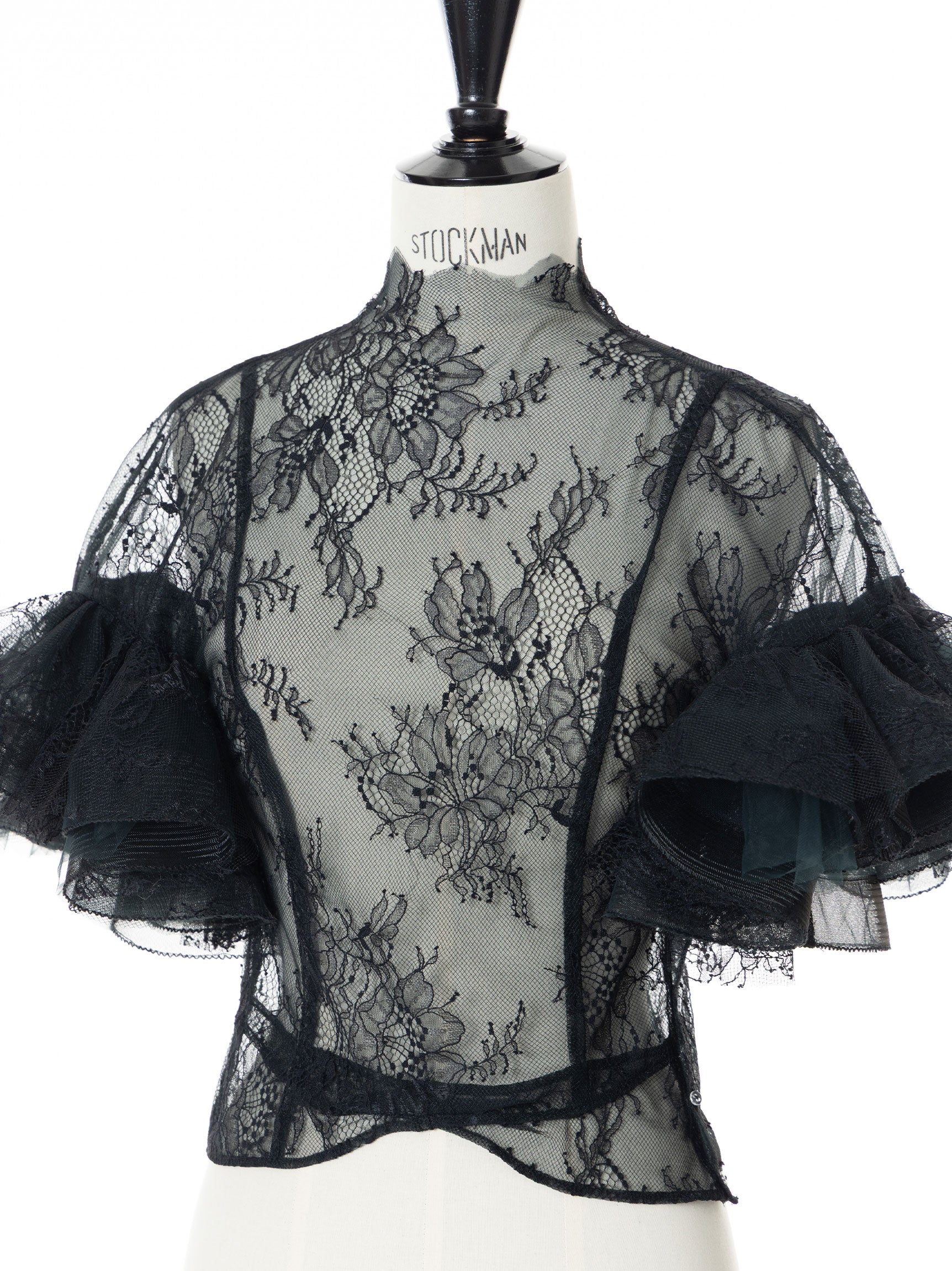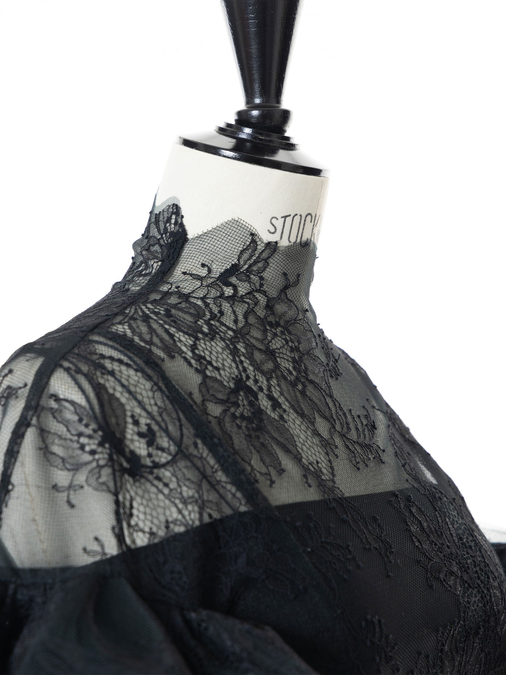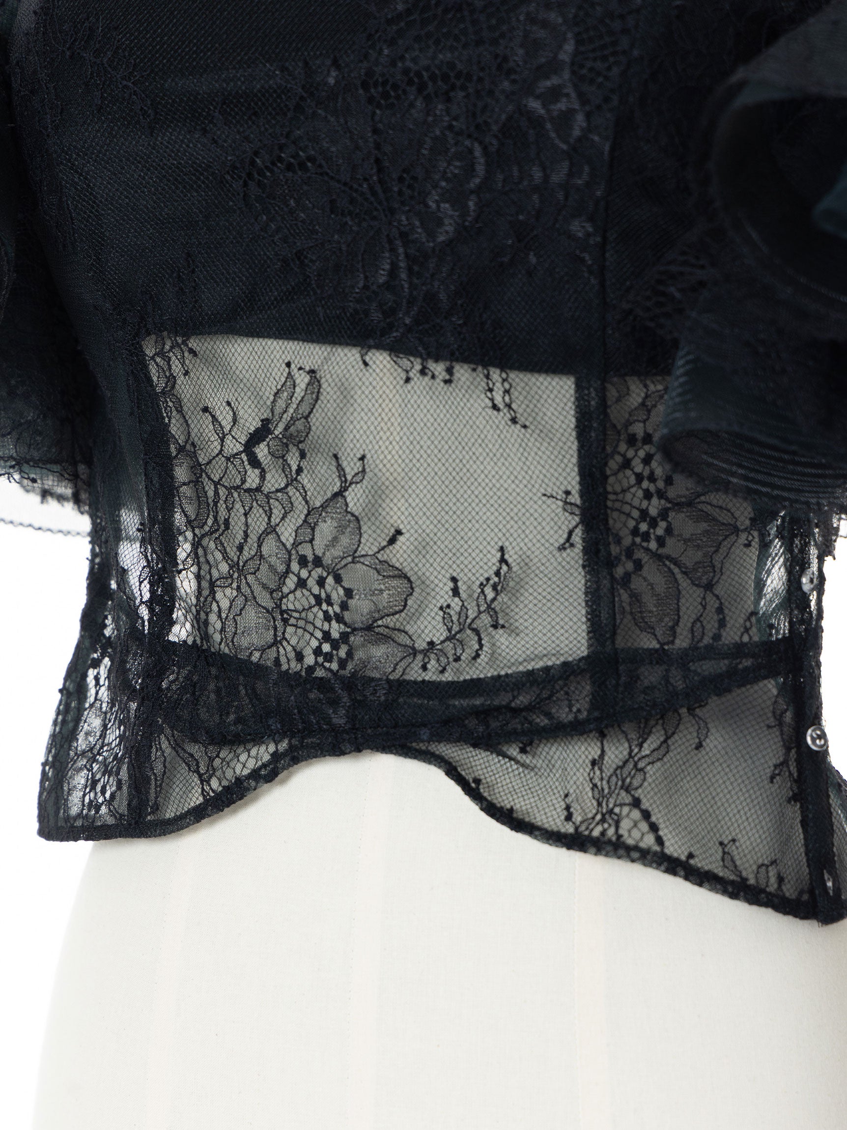 繊細なレースを用いた華やかで儚げな印象と、レースをボリューミーに重ねたドラマチックなお袖のシルエットのコンビネーションのコントラストが、意外性のもたらす優美なバランスを生み出します。