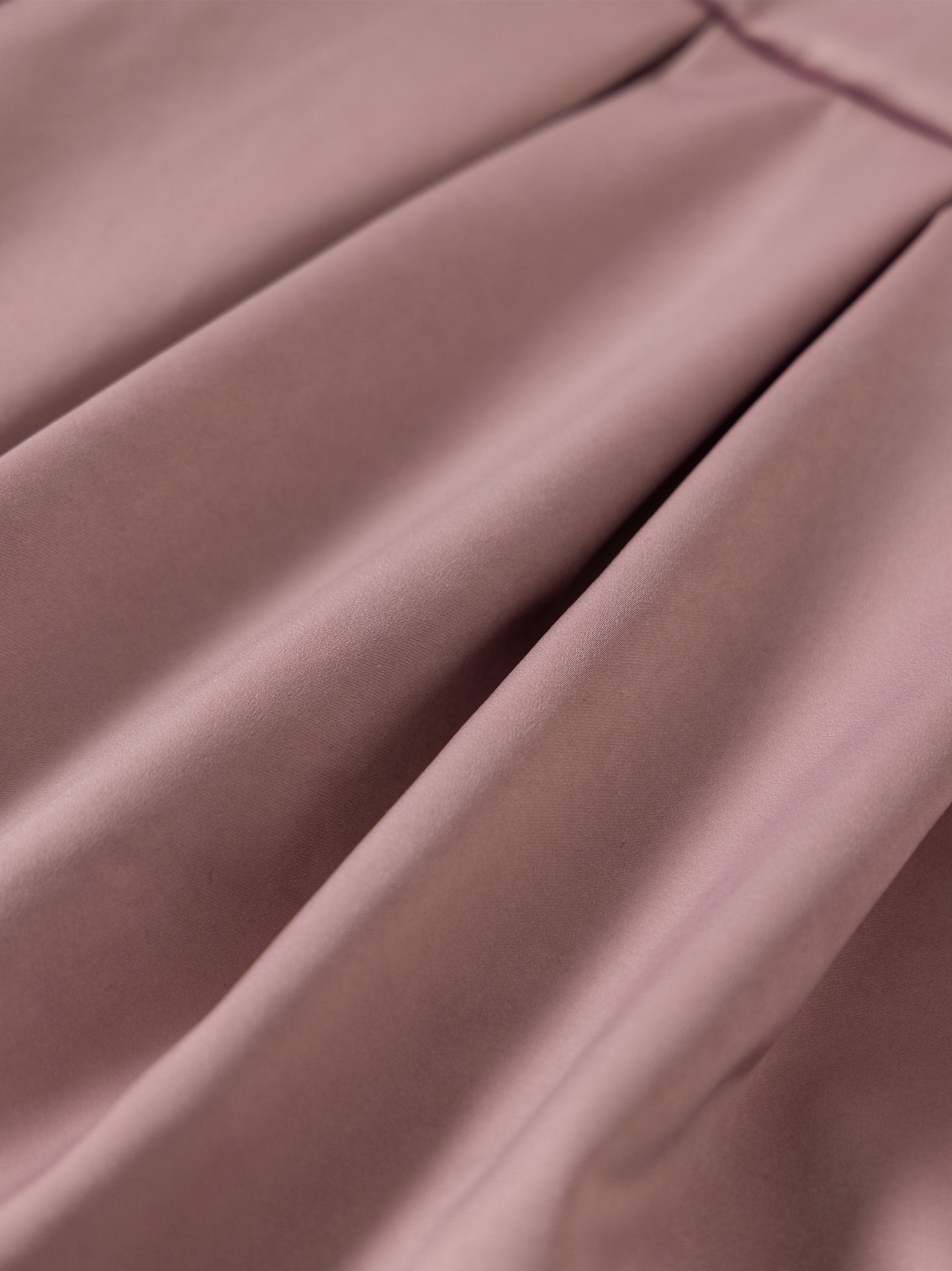 マットなサテン地と、胸元に光を寄せる光沢感のあるサテン時のコンビネーションにも深いカラーとニュアンスの微配色で多層な輝きを生み出します。