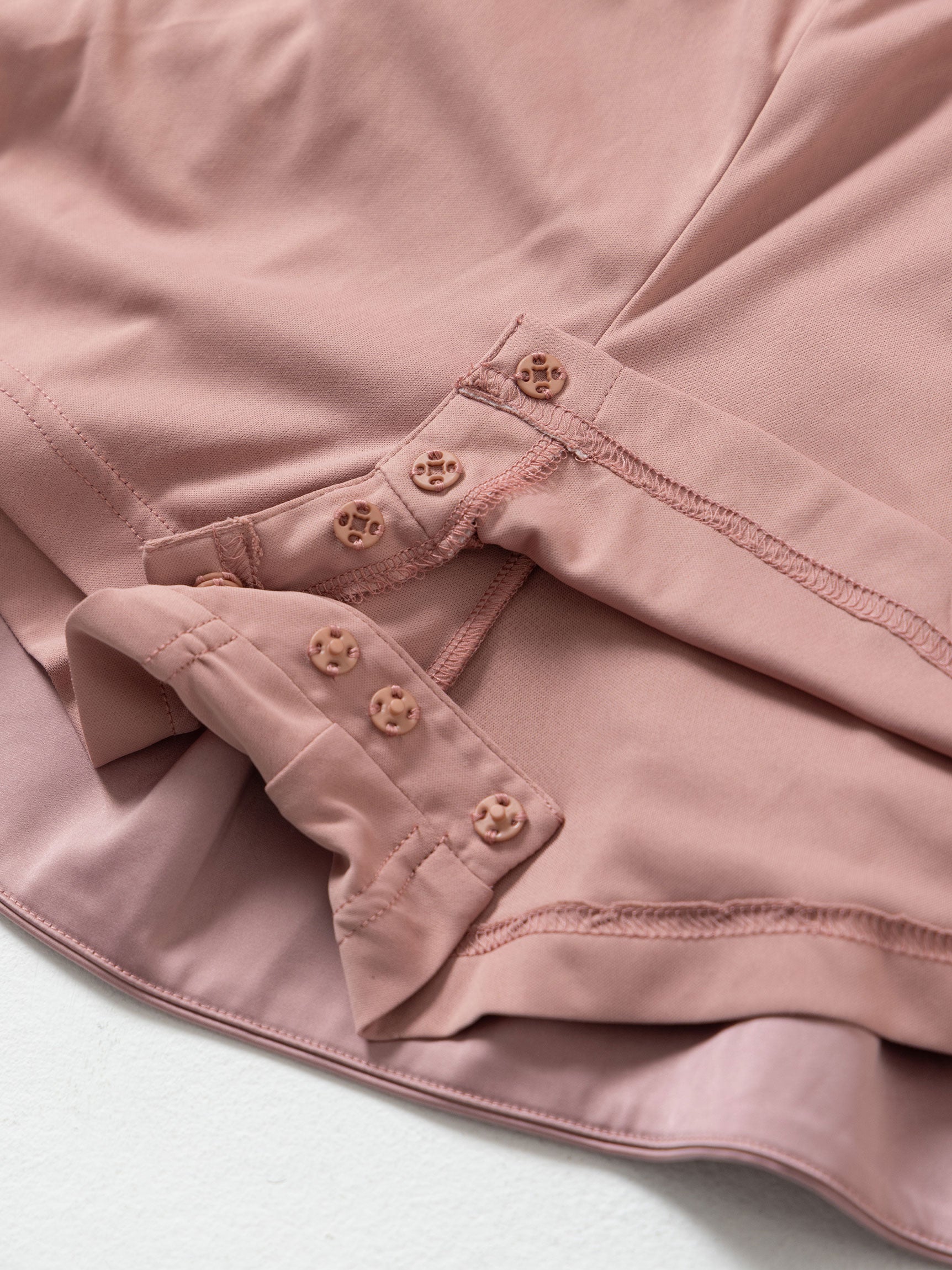 袖周りのシュリンクにはゴムを通し、フィット感が有りながらも動きを制限しない楽な着心地で長時間の着用にもストレスフリーでご着用いただけます。